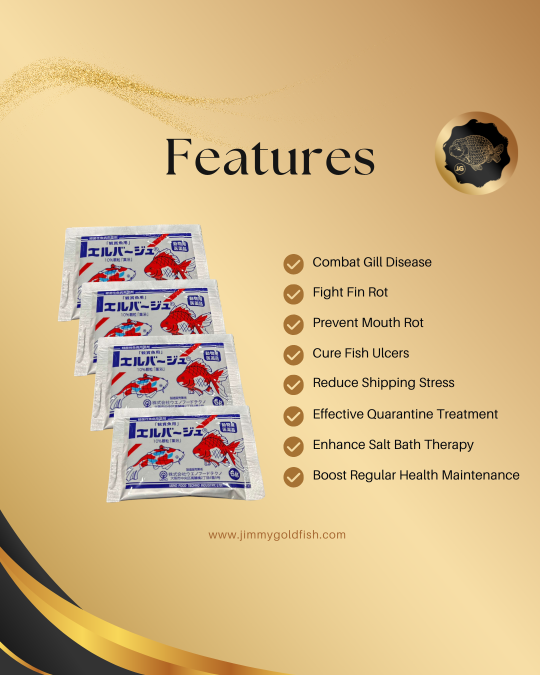 Elbagin es un tratamiento antibacteriano de calidad profesional ampliamente utilizado por criadores y aficionados a los peces. Originario de Japón, este extraordinario producto está especialmente diseñado para combatir una variedad de enfermedades comunes de los peces, como la enfermedad de las branquias, la podredumbre de las aletas, la podredumbre de la boca y las úlceras.