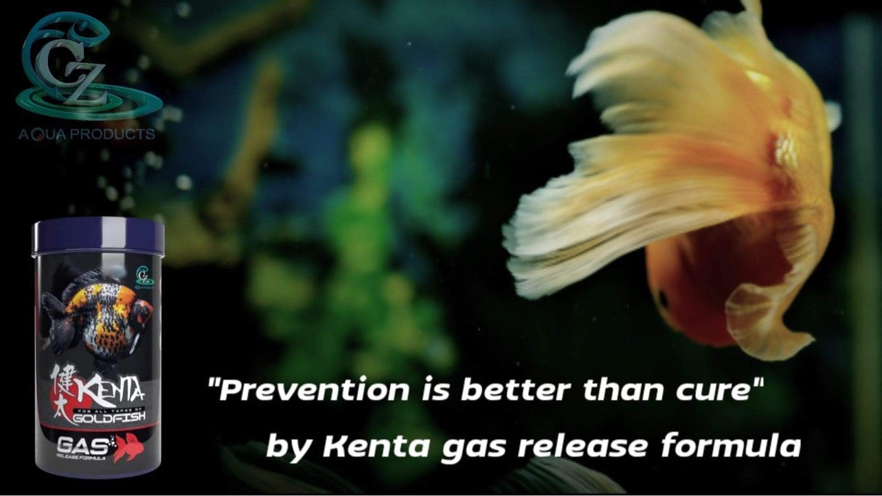 Kenta" gas release goldfish food, the goldfish waste will come our long and full Sometimes capturing air bubbles along with it pulling out the gas from the digestive tract. Moreover, Kenta is created to be the main source of food for goldfish and contains multi-vitamin to boost metabolism , it can be mixed with other foods containing high protein, to make it a well balanced meal. The main Ingredient for -Kenta is organic calcium to strengthen fins and tails, and to stimulate intestine movement.